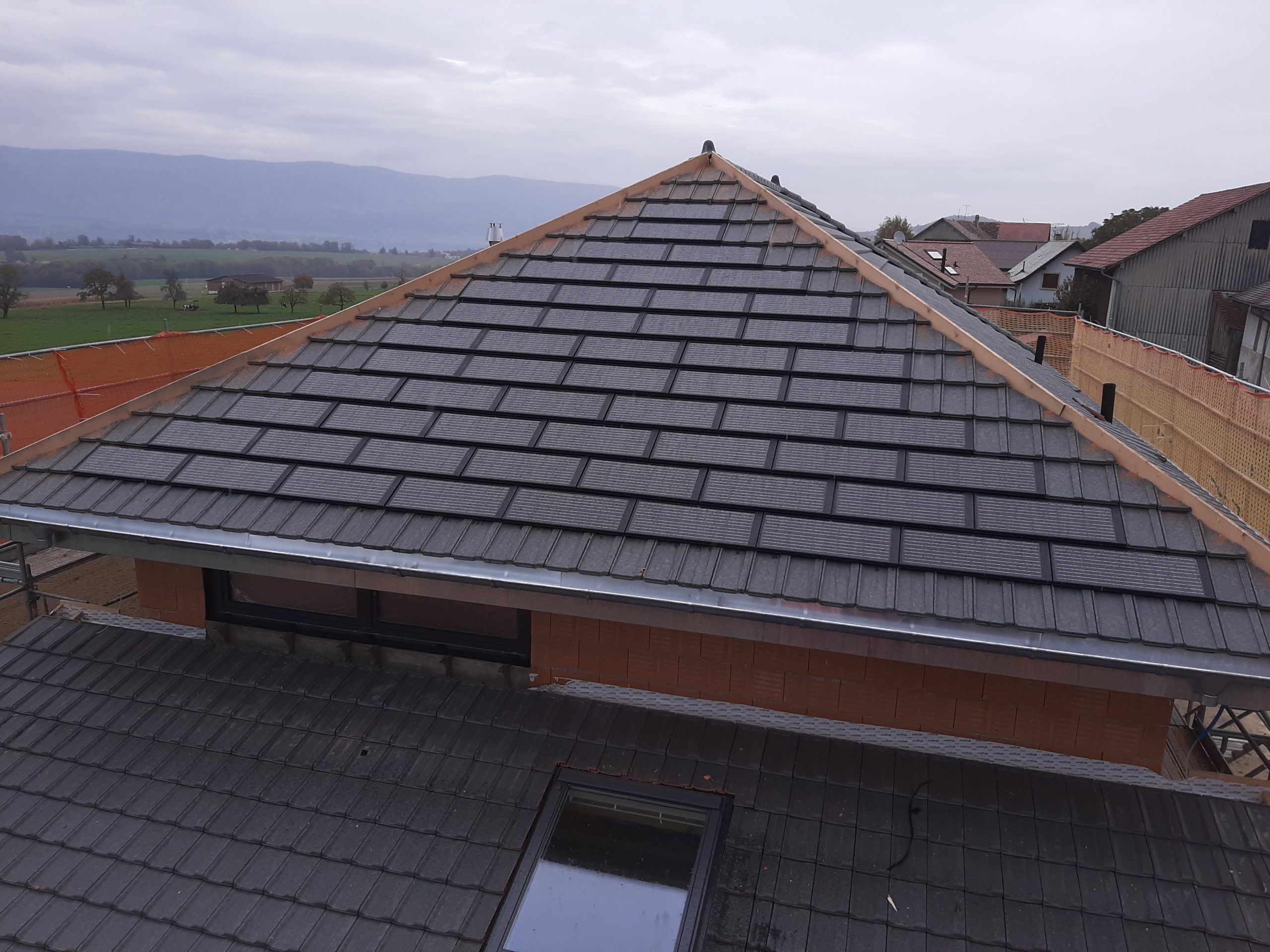Les tuiles photovoltaïques sont la solution la plus élégante. Elles se fondent parmi les autres tuilent et se remarquent donc à peine. C’est le choix le plus esthétique. Le prix de cette élégance est le rendement. En effet, les tuiles ont un rendement inférieur aux panneaux solaires intégrés ou ajoutés.